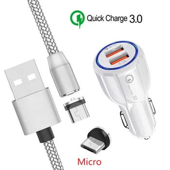 Magnetic Micro USB Kabel untuk Samsung Huawei Y7 Honor 9 Lite ZTE Blade V7 6A Redmi 7 4X Android Ponsel QC 3.0 Cepat Charger Mobil